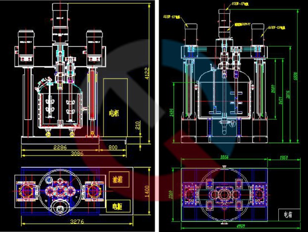 2、攪拌缸帶有夾套,可根據(jù)需要進(jìn)行加熱及冷卻;